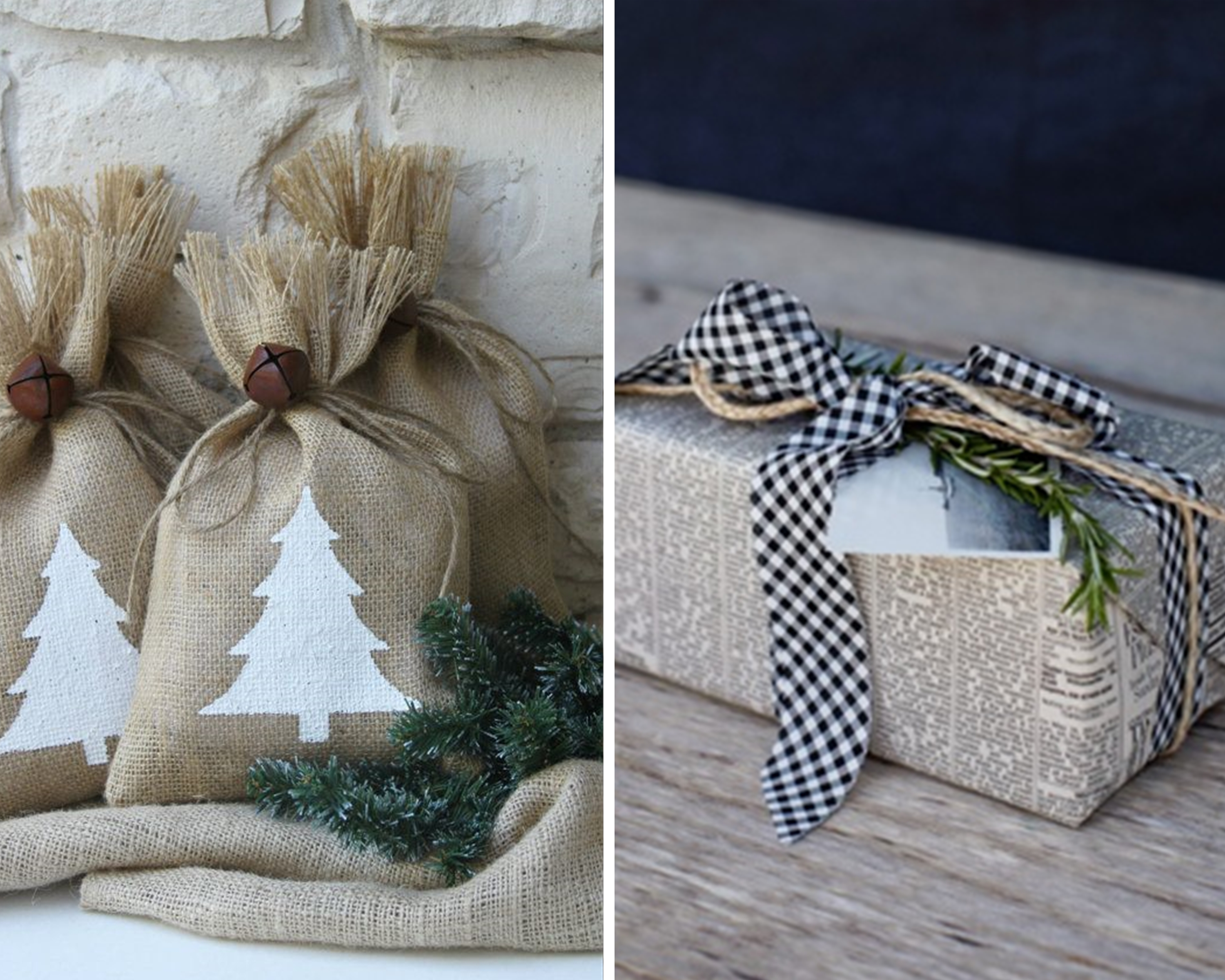 All you need is plain brown paper (or plain white), newspapers, baker’s twine or string and cedar sprigs, burlap and handmade gift tags to create these fabulous Nordic inspired, cozy Christmas wraps.
