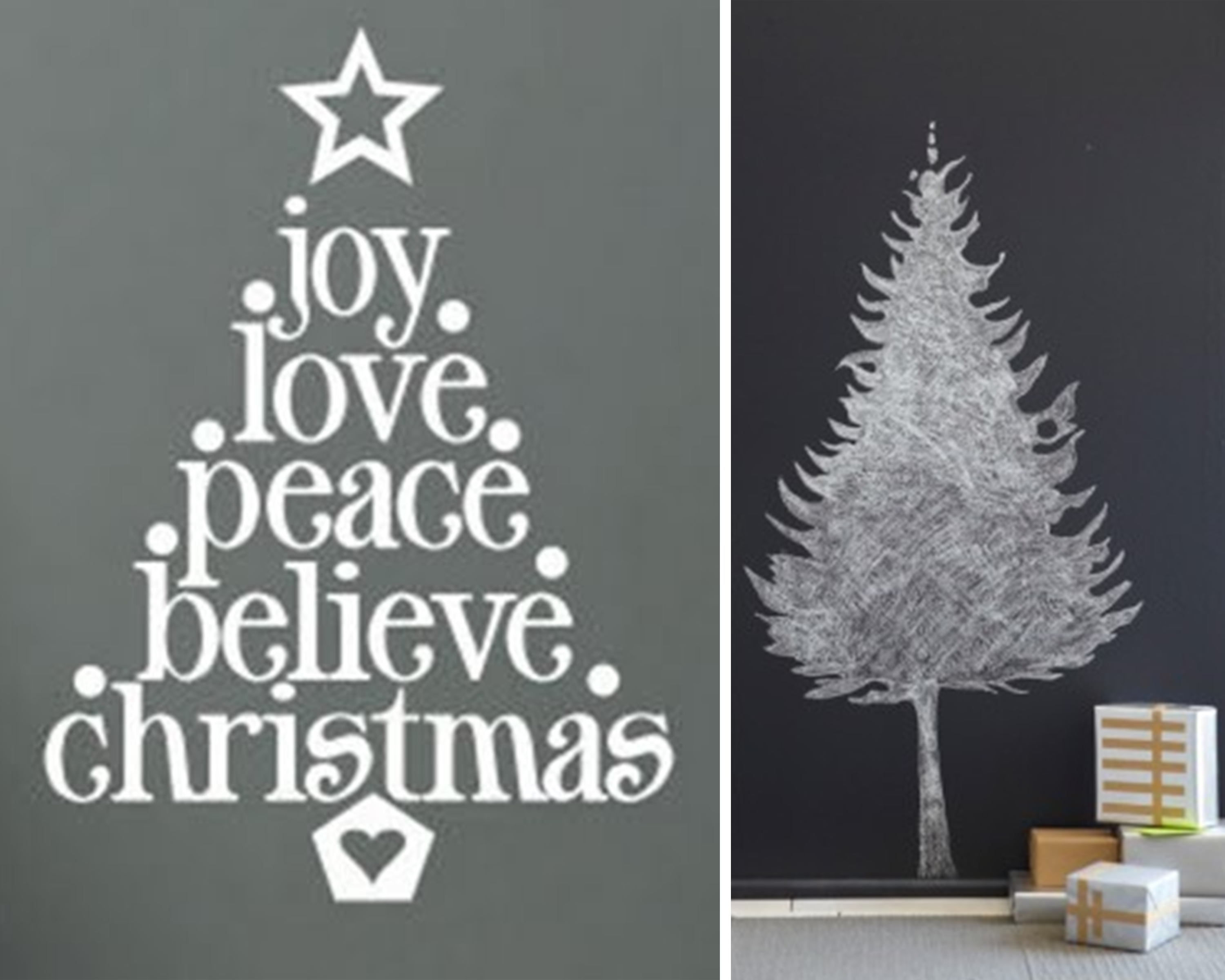 To highlight some of your options for this season, I have created this round-up with my personal favorite wall decals. All you need is some chalk, washi tape, pictures and Christmas ornaments. Easy as that.