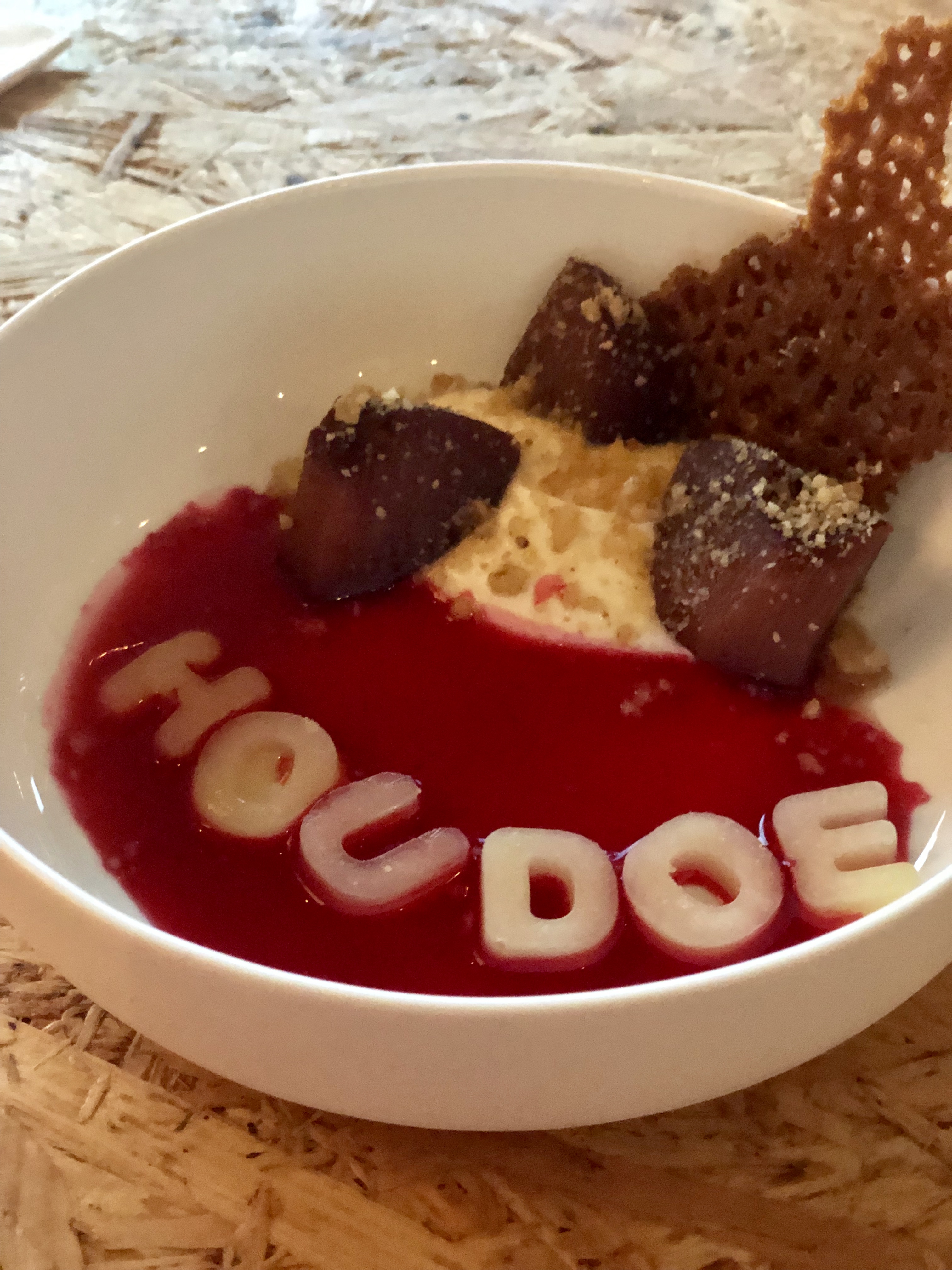 Bij de Teruggave, vinden we creatieve Ralph aan het werk. Met zijn bedrijf Ravanello, een fooddesign studio dat zich bezighoudt met het bedenken, ontwikkelen en uitvoeren van food concepten, ontvangt hij ons hier, geheel naar Brabants gebruik ´via de achterdeur´. Overal is over nagedacht! Geheel geinspireerd op onze Brabantse katholieke,- en familiale tradities, onze zachte g en dialect serveert hij ons vandaag van zijn ´Brabant menu´ het dessert: hangop met poached pears uit ´s- Gravenmoer, kletskop, walnoten en bietensap. We drinken er heuse bubbels bij uit Chaam en na afloop schenkt Anne van Tea by Me zelfs nog een gezellig Brabants baksku thee uit Zundert in. Houdoe en bedankt!