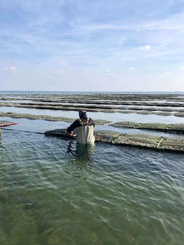 Als antwoord op de oesterboorder, een slakje die gaatjes in de schelp boort en vervolgens de oester opeet, zijn Zeeuwse kwekers een aantal jaar geleden begonnen met tafels. Met de Oesterbaron varen we naar de oesterpercelen om deze nieuwe techniek van dichtbij te bekijken. De oesterboorder blijkt een slechte klimmer en kan zo niet of nauwelijks bij deze zilte delicatesse komen. Bijkomend voordeel is dat de oester sneller kan groeien, mooier is van vorm en ook niet onbelangrijk, makkelijk open te maken.