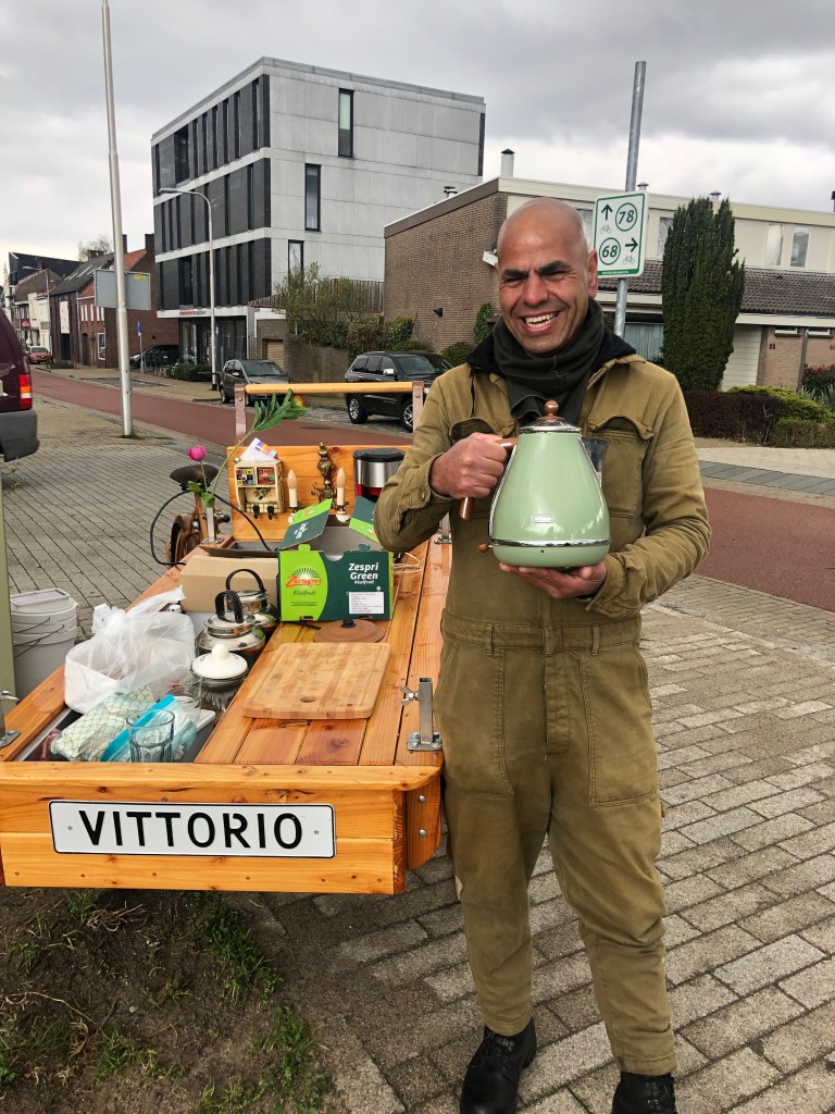 In principe is Vittorio er elke dag vanaf 12 uur. Is het lekker zonnig dan is er ijs en verkoelende drankjes. Is het wat frisser dan schenkt hij je met liefde warme thee met appeltaart. Via Facebook heb je altijd de laatste status update en naar huis gaan doet hij echt pas als alle gesprekken zijn gevoerd…