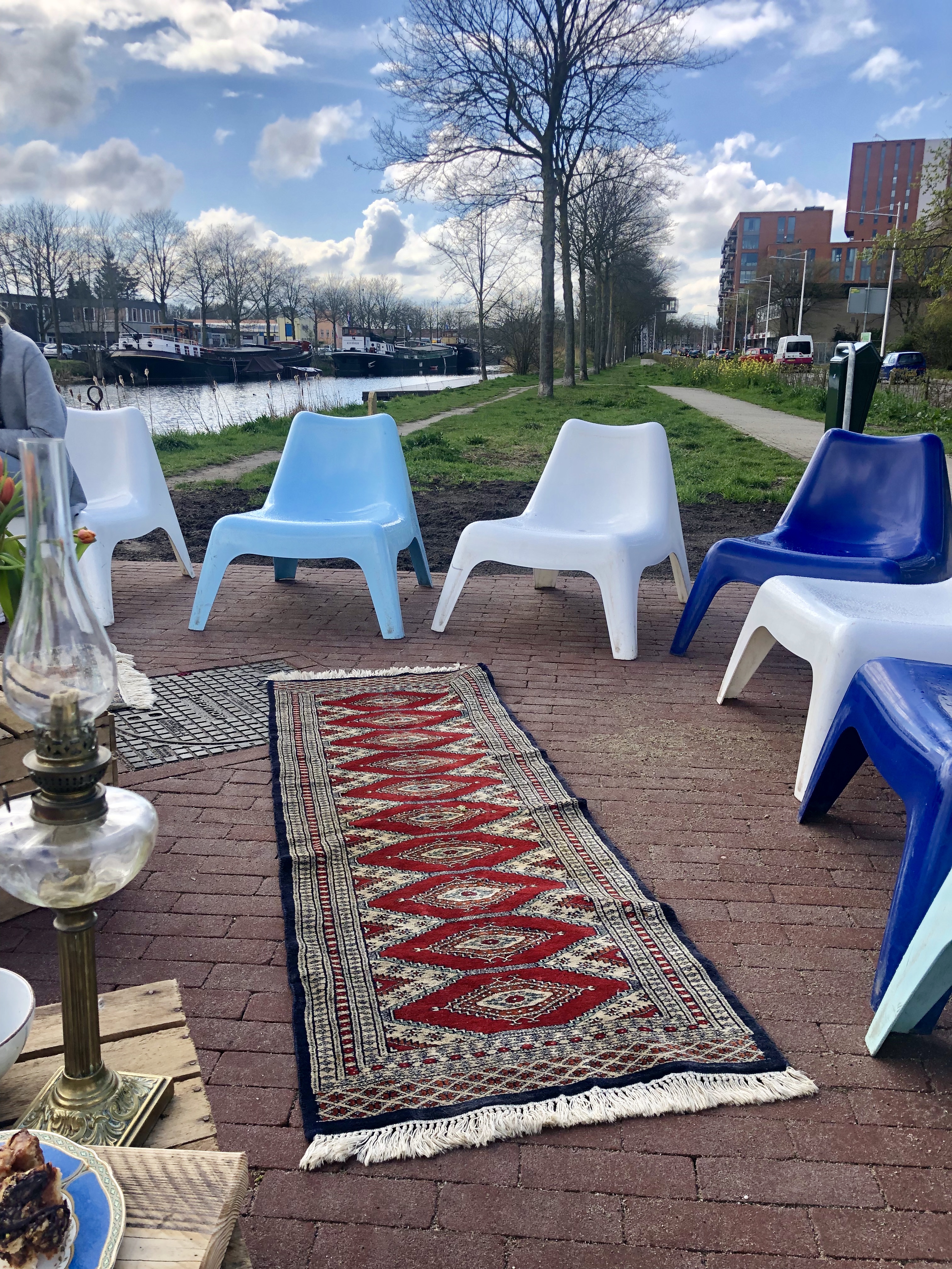 Intussen komen er nieuwe gasten ´binnen´ onder het spiksplinternieuwe zeildakje dat hij een paar dagen eerder kreeg van een stadsgenoot. ´Ga zitten, tapijtjes genoeg!´ Vittorio vertelt hoe ook de gemeente mee werkt aan dit, voor Nederland, unieke concept. Zij schonken hem permanente huiskamerbankjes en zorgden voor de aanplant van groen voor meer intimiteit. En dan is er ook nog ´de bloemendame´ die hem vrijwel elke avond verse bloemen komt brengen. Hij lijkt even in gedachten. ´Het is niet meer mijn huiskamer, maar nu echt de huiskamer van iedereen…´.
