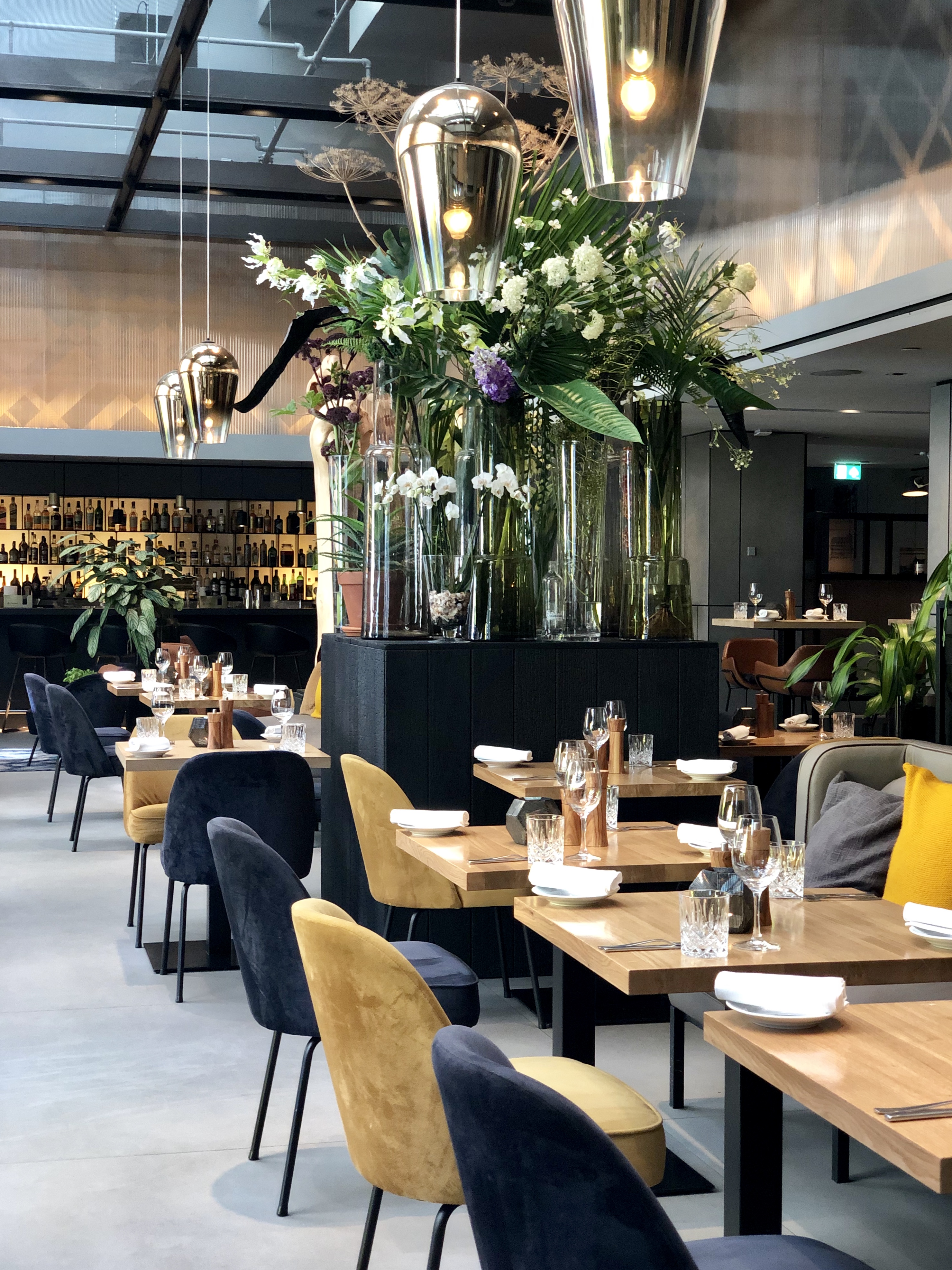 We stappen binnen in een gelikte brasserie waar het leven goed is. Dat voel je aan alles. Aan het prachtige -helemaal-van-nu´ interieur met veel zwart staal, fluweelzachte stoelen en kussens in alle warmen tinten bruin, okergeel en grijs. Aan de trots van de jonge gastheer Timo, die hartje zomer al levendig voor zich ziet, hoe hij straks op de plek van de grote bloemvazen, een metershoge kerstboom gaat zetten met lampjes. ´Vanavond als het donker is moet je eigenlijk nog even terugkomen. Dan ziet het er hier zo gezellig uit!´