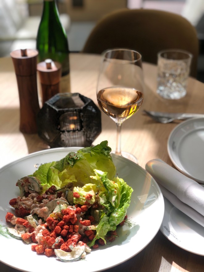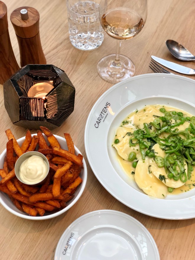 Het eten blijkt, eigenlijk net als het interieur, voor de fijnproevers onder ons. Heel erg goed maar vooral niet te gecompliceerd dankzij de culinaire koker van conceptchef Maik Kuijpers (Librije***). Hij bedacht, lekker overzichtelijk, een compacte kaart met alleen de beste ingrediënten uit ons eigenste heerlijke landje en brengt zo het Hollandse platteland naar de grote stad. Stuk voor stuk herkenbaar maar vooral niet te eng. ´Ook onze internationale hotelgasten moeten zich hier thuis voelen natuurlijk´.