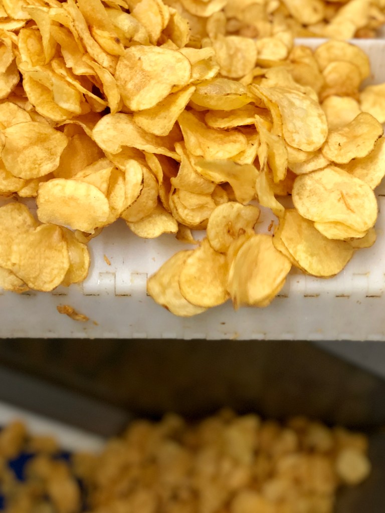 En dan is er nog het bakproces wat zorgt voor een compleet andere structuur. Bij de industriele producenten is er een continue aanvoer van aardappelschijfjes en een continue afvoer van chips. ´Wij bakken in batches en dat heeft effect op de structuur. Bij constante aanvoer krijg je chips die als het ware smelt op je tong. Bij ons moet je er wat voor doen!