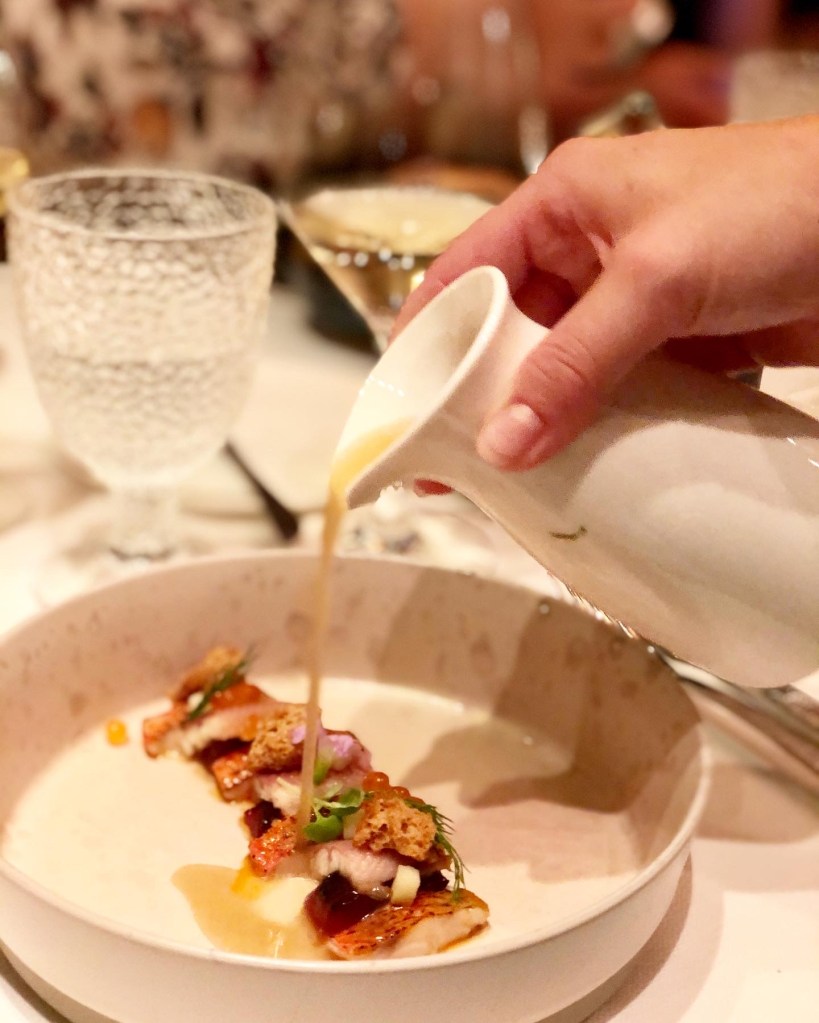 Op nummer 42 in de wereldranglijst van beste groenterestaurants en toch is Pollevie alles behalve een vegetarisch restaurant! Wel klopt het dat chef Martin heel graag werkt met groente, liefst uit eigen streek en seizoensgebonden. Eigenlijk liep hij al jaren vóór op de muziek met al in 2007 éénderde van zijn kaart volledig vegetarisch. Gewoon omdat het goed voor je is en goed voor onze toekomst zegt hij er zelf over. Inmiddels weten vegetariërs uit het hele land hem dan ook goed te vinden maar naast een amuse van gefermenteerde radijs met daslookcrème en gepofte boekweit én een groente ceviche bereid met champignon, artisjok en kievitsbonen aten we er ook een fantastische diklipharder met mosseltjes, knolselderij, Granny Smith, kruisbes en verjus. En last but not least nog een a la minute gegaarde sucade met polenta en courgette.
