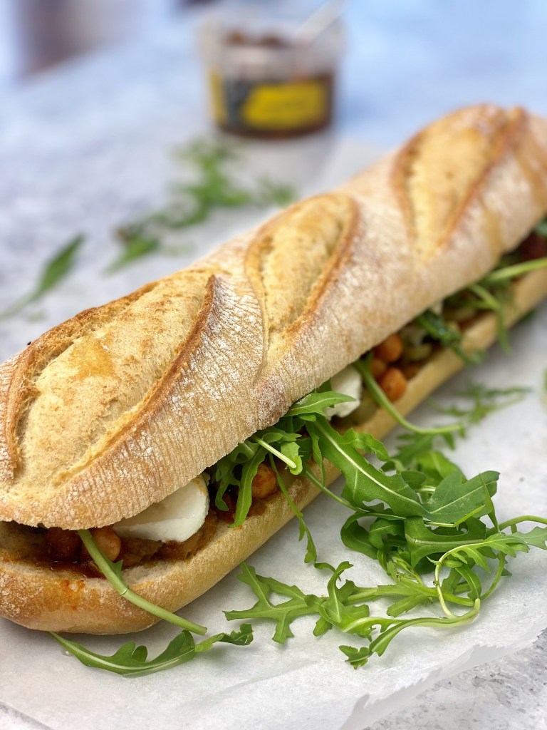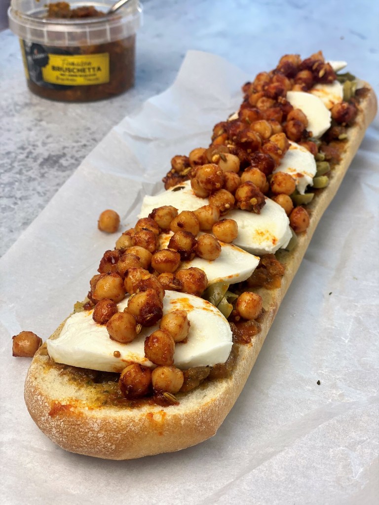 Ter inspiratie maakte ik met de Tomaten Bruschetta een volledig veganistische sandwich met pittige kikkererwten. Perfect voor op de lunchkaart op een zonnig terras, maar ook in je eigen vertrouwde omgeving voor jezelf of je huisgenoten natuurlijk absoluut geen straf! En ben je een grotere liefhebber van pesto? Dan vervang je in het recept de Tomaten Bruschetta uiteraard eenvoudig door hun Vegan Pesto Basilicum.