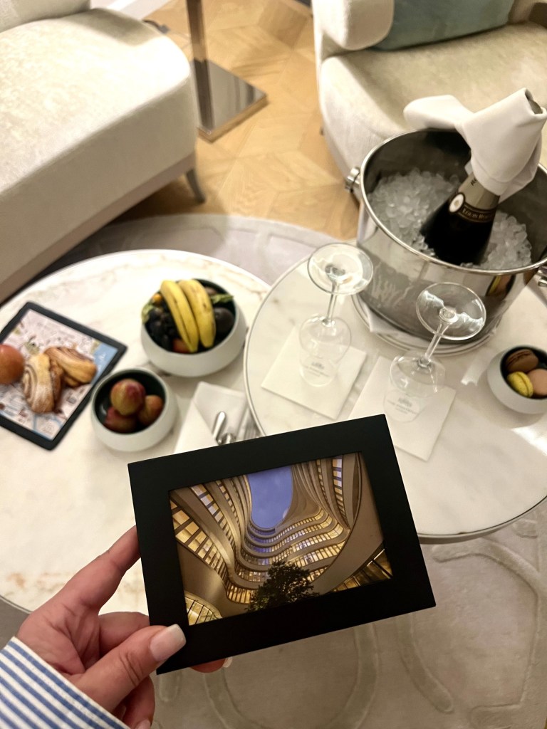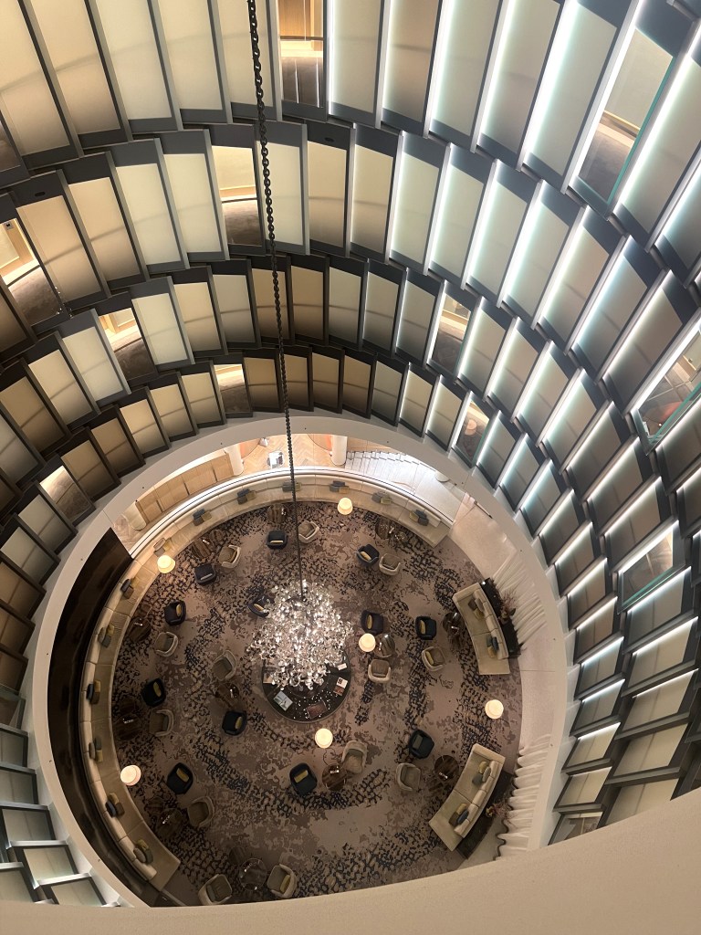 Ook helemaal boven trouwens, vind je de hotelbar met een spectaculaire view op het atrium beneden. Geen idee of het elke dag zo is maar toen ik er was zorgde een pianist voor wel een hele fijne afsluiting van de dag. En dat mag je je precies zo voorstellen als het klinkt. Denk maar aan een grote fijne fauteuil , piano muziekje op de achtergrond, gedimd licht, een glaasje iets en een hapje lekkers…nou, dan gaat het slapen als een roosje vanzelf!