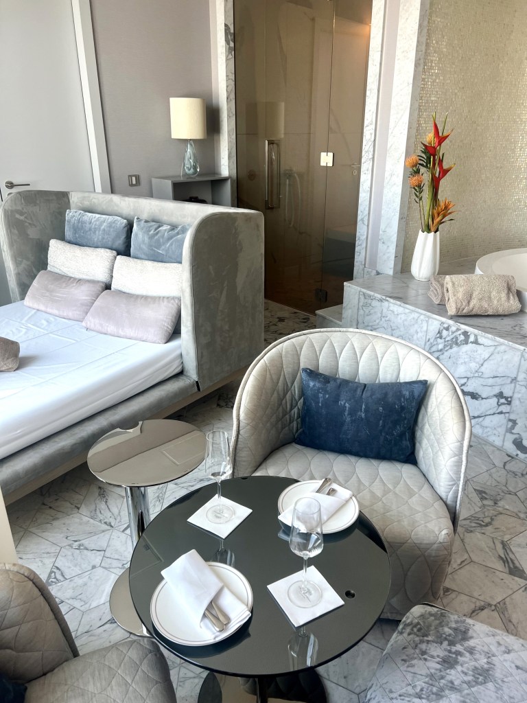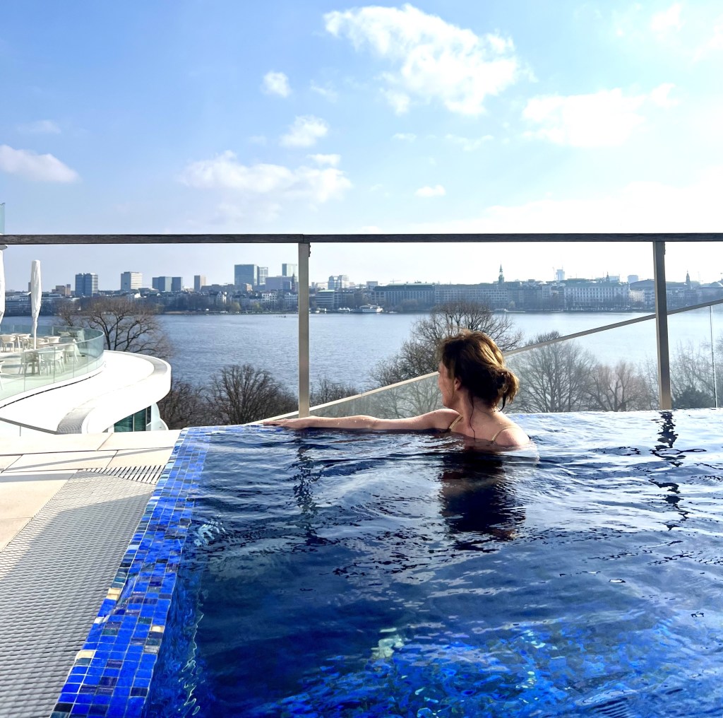Het was een beetje een race tegen de klok want ook een bezoekje aan de stad Hamburg (klik op de link voor mijn tips) stond op de planning en een vliegtuig gaat natuurlijk niet wachten maar ik had me daarboven echt prima nog een paar dagen, wat zeg ik, weken kunnen vermaken! Een privé nestje (vraag maar naar een private spa suite) boeken voor een dag met eigen jacuzzi, privé sauna, roomservice, flatscreen televisie en waanzinnig uitzicht. Of lekker de fitness in, saunaatje en stoombad pakken, ijskoud afdouchen, baantje trekken, boekje lezen, even IV drippen of een massage en dat dan on repeat. Blij dat ik ga verhuizen…dan kan het elke dag haha